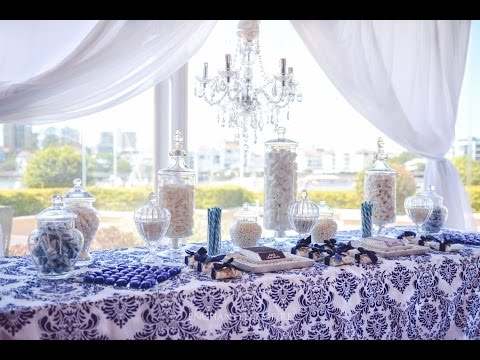 This bold and elegant patterned Lolly Bar was framed by the beautiful Brisbane River. Set along the Dockside, this colour palette complimented the setting perfectly. Custom wrapped chocolate bars, small parcels packaged in Navy Satin ribbon, all adorned with a Glass Chandelier to illuminate the delicious treats on display.